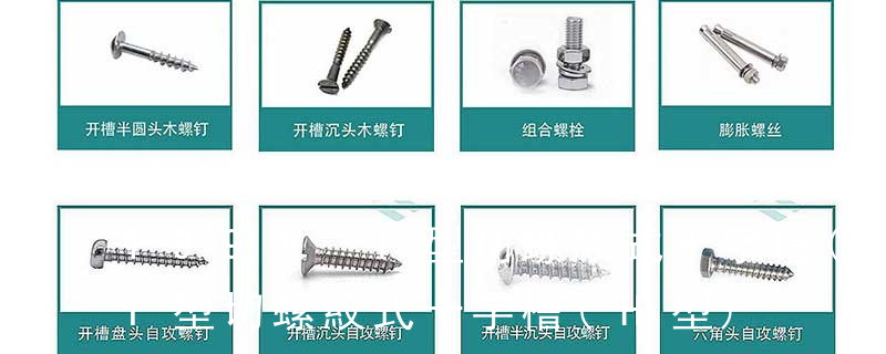 ① 螺釘直徑 ② 螺釘長(zhǎng)度?、?螺釘頭型 B:球面圓柱頭; C:圓柱頭; F(K):沉頭; H:六角頭;HW:六角頭帶墊圈; O:半沉頭; P:平元頭; R:半元頭;PW:平元頭帶墊圈; T:大扁頭; V:蘑菇頭;④ 1)開槽普通螺釘多用于較小零件的連接。它有盤頭螺釘、圓柱頭螺釘、半沉頭螺釘和沉頭螺釘。盤頭螺釘和圓柱頭螺釘?shù)尼旑^強(qiáng)度較高,瑁在普通的部件連接上;半沉頭螺釘?shù)念^部呈弧形,安裝后它的頂端略外露,且美觀光滑,一般用