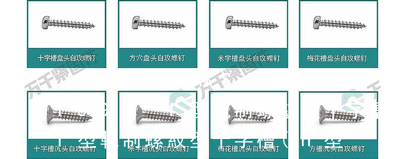 1、Flat:平頭 (鎖入后,頂部與工作件齊平)2、Oval:色拉頭、O頭、半沉頭 3、Round:圓頭 4、Pan:圓扁頭 5、Truss:大圓扁頭 6、Hex:六角頭 A-5:Finish Code/外觀處理。公制自攻螺絲 :于品名后方直接標(biāo)示 Tapp 六角花形等;內(nèi)扳擰:一字槽、十字槽H型、十字槽Z型、十字槽F型、四方槽、復(fù)合槽、內(nèi)花鍵、內(nèi)六角花形、內(nèi)三角、內(nèi)六角、內(nèi)12角、離合器槽、六葉片型槽、高扭矩十字槽等。3、螺紋種類螺紋種類繁多,有自攻螺紋(