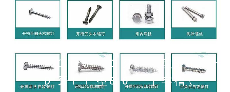 (鐵板牙自攻螺絲) B-2: Plastic Tapping Screw. (塑膠用,自攻螺絲) C: Wooden Screw : 木工螺絲 D: Drywall Screw :水泥墻螺絲 E: Self Drilling Screws鉆尾螺絲(不銹鋼鉆尾螺絲,復(fù)合材料鉆尾螺絲) F:膨脹螺絲,四片膨脹螺絲又