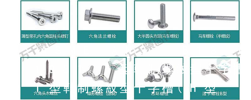 1、Flat:平頭 (鎖入后,頂部與工作件齊平)2、Oval:色拉頭、O頭、半沉頭 3、Round:圓頭 4、Pan:圓扁頭 5、Truss:大圓扁頭 6、Hex:六角頭 A-5:Finish Code/外觀處理。公制自攻螺絲 :于品名后方直接標示 Tapp 六角花形等;內(nèi)扳擰:一字槽、十字槽H型、十字槽Z型、十字槽F型、四方槽、復(fù)合槽、內(nèi)花鍵、內(nèi)六角花形、內(nèi)三角、內(nèi)六角、內(nèi)12角、離合器槽、六葉片型槽、高扭矩十字槽等。3、螺紋種類螺紋種類繁多,有自攻螺紋(